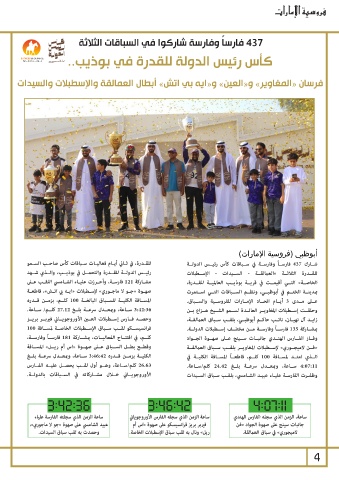 مشــاركة 121فارســة ،وأحــرزت عليــاء الشــامسي اللقــب عــى شــارك 437فارســاً وفارســة في ســباقات كأس رئيــس الدولــة