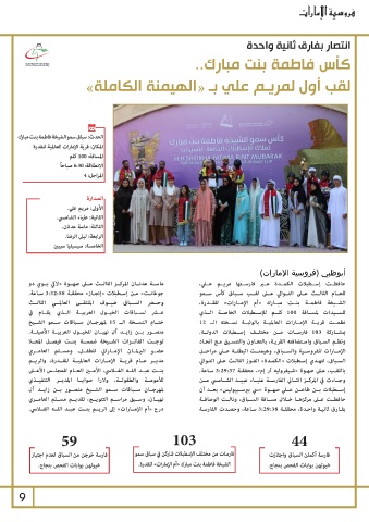 بنــت عبــد اللــه الفــاسي ،الأمــن العــام للمجلــس الأعــى الإمــارات للفروســية والســباق ،وهيمنــت البطلــة عــى مراحــل