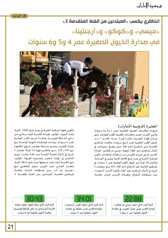 وأنهــى معهــا المرحلــة الثانيــة في زمــن بلــغ 34:01ثانيــة. الفجيرة (فروسية الإمارات)