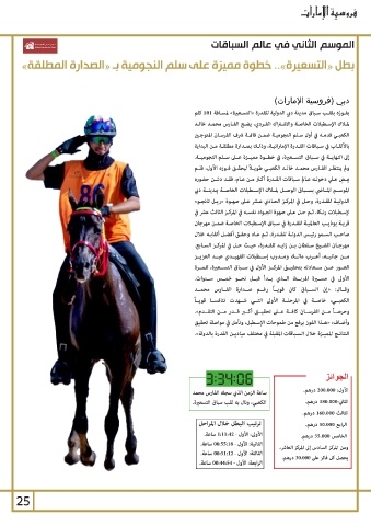 ساعة الزمن الذي سجله الفارس محمد الأول 200.000 :درهم.