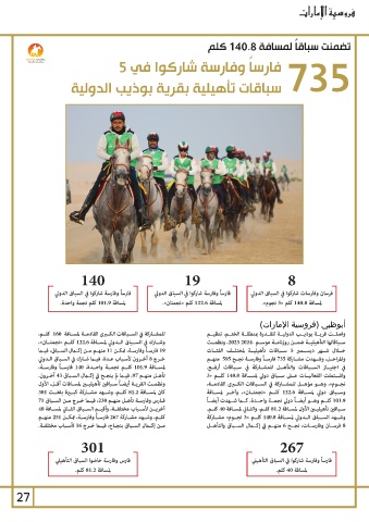 لمســافة 101.9كلــم نجمــة واحــدة 140 ،فارســاً وفارســة، خــال شــهر ديســمبر 5ســباقات تأهيليــة لمختلــف الفئــات