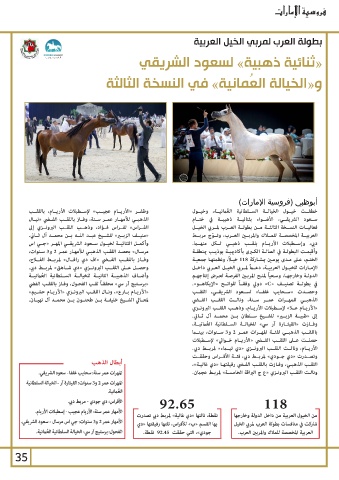مرسـال» بحصـد اللقـب الذهبـي للأمهـار عمـر 2و 3سـنوات، العربيــة المخصصــة للمــاك والمربــن العــرب ،وتــ ّوج مربــط