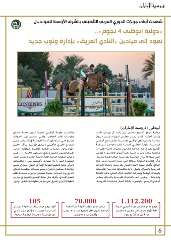 تفــوق المليــون درهــم ،ويبلــغ مجموعهــا 1.112.200درهــم، للفروســية ،بطولــة أبوظبــي الدوليــة لقفــز الحواجــز مــن فئــة
