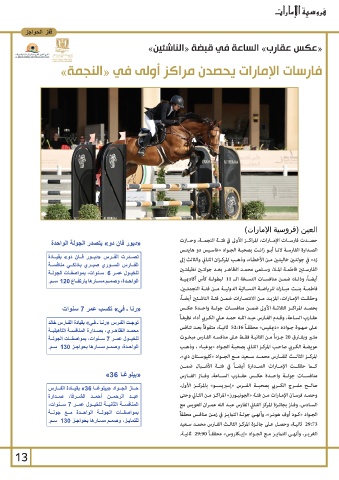 للخيـول عمـر 6سـنوات ،بمواصفـات الجولـة زد» في جولتـن خاليتـن مـن الأخطـاء ،وذهـب المركـزان الثـاني والثالث إلى