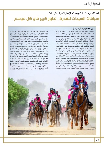 ولأهميـة سـباقات السـيدات ،تقـام ضمـن أهـم وأكـر المهرجانـات للقــدرة ،مــن خــال إحــراز الألقــاب والتواجــد عــى منصــة
