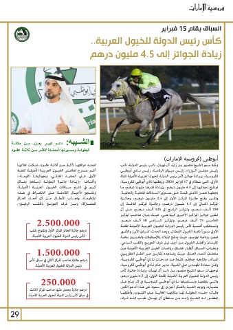 رئيـس الدولـة للخيـول العربية الأصيلـة للفئـة الأولى ،إلى 4.5مليون درهم،