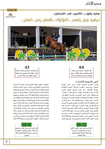 منهــم 4فرســان في إكــال التمايــز دون خطــأ ،وقــال الزمــن للتمايــز عــى حواجــز بلــغ ارتفاعهــا 145ســم ،وتنافــس