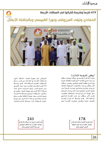 «الياس» لإسـطبلات «أم ،»7بمشـاركة 81فارسـاً وفارسة. بلقــب كأس ســلطان بــن زايــد للقــدرة الماراثــوني