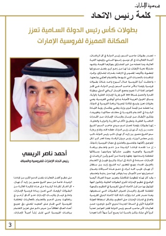 رئيس اتحاد الإمارات للفروسية والسباق العاليـة ،ومـا تحملـه مـن خـر للمشـاركين بجوائزهـا القيمـة ،وتشـهد