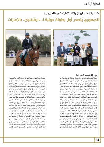 للفروسـية ،وجـاءت في المركـز الثـاني الفارسـة ياسـمين اليـاس للفروسـية ،أول تحـ ٍد دولي في الإمـارات لمنافسـات «الايفنتينـج»