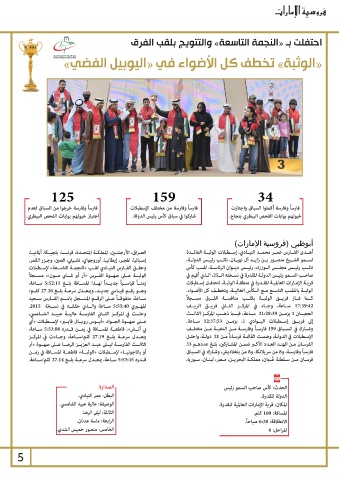 ســاعة ،متفوقــاً عــى الرقــم المســجل باســم الفــارس ســعيد قريـة الإمـارات العالميـة للقـدرة في منطقـة الوثبـة ،لتحتفـل إسـطبلات