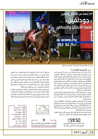 « :2021ميستيك جايد» العالمي من أصل 13انتصاراً لخيول الإمارات. الزمن القياسي الذي سجله الأسطورة دبي