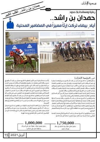 وأكـدت هـذه الرعايـة الـدور الكبـر للمغفور له الشـيخ حمدان بـن راشـد آل مكتوم في دبي (فروسية الإمارات)