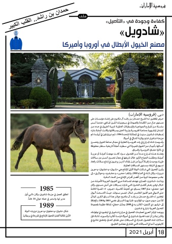مدير لها ،واستمر في عمله حوالي 30عاماً1989. سلسـلة مـن المـزارع النموذجيـة والإسـطبلات العالميـة لتربيـة الخيـول في عـدد مـن