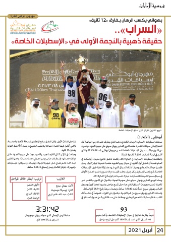 مهرجان أبوظبي للقدرة بهواني يكسب الرهان بـفارق « 12ثانية»