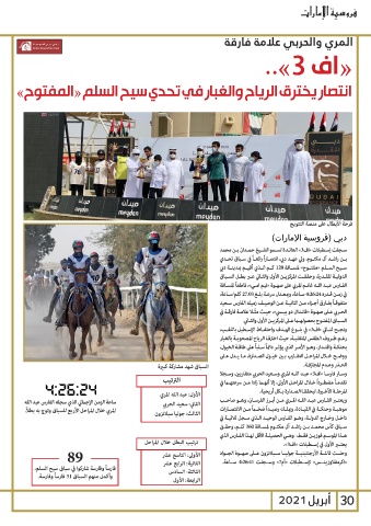 ساعة الزمن الإجمالي الذي سجله الفارس عبد الله السباق شهد مشاركة كبيرة فرحة الأبطال على منصة التتويج