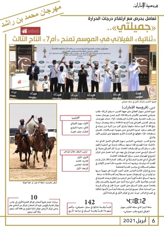 و 25ألف درهم. وحـل في المركـز الثالـث الفـارس خلـف أحمـد الغيـث على صهـوة «بريها