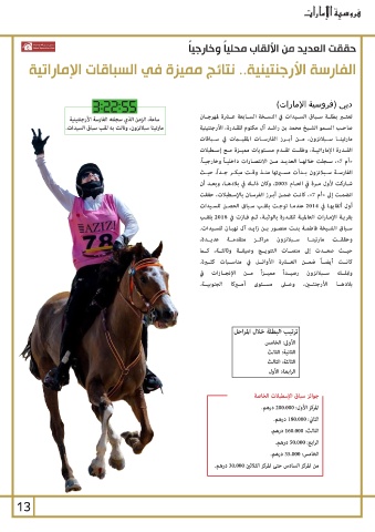 مارتينا سبلانزون ،ونالت به لقب سباق السيدات. صاحـب السـمو الشـيخ محمد بن راشـد آل مكتوم للقـدرة ،الأرجنتينية
