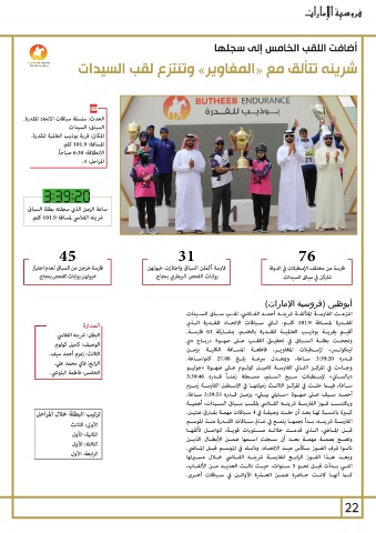 المراحل.4 : انتزعــت الفارســة المتألقــة شرينــه أحمــد الفــاسي ،لقــب ســباق الســيدات