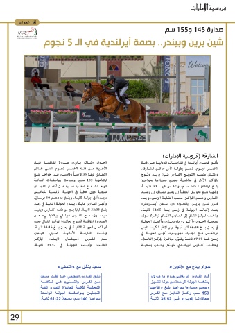 التحــدي فيهــا 33فارســاً وفارســة ،عــى حواجــز بلــغ تألــق فرســان أيرلنــدا في المنافســات الدوليــة مــن فئــة