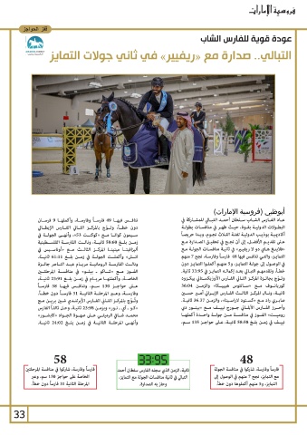 عــى حواجــز 130ســم ،وتنافــس فيهــا 58فارســاً خطـأ ،وتقدمهـم التبـالي بعـد إكمالـه التمايـز في 33:95ثانية.