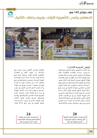 ارتفاعهــا 145ســم ،وتنافــس فيهــا 24فارســاً بلــغ ارتفاعهــا 145ســم ،وأقيمــت ضمــن فعاليــات