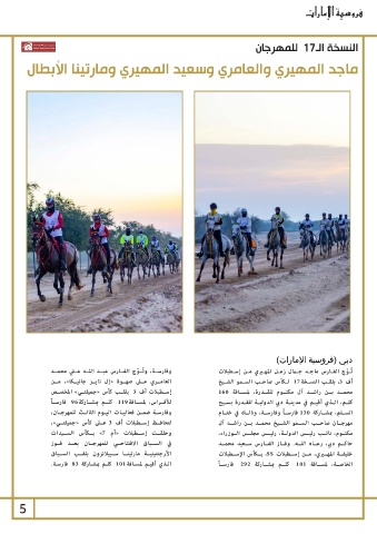 5 الخاصــة ،لمســافة 101كلــم بمشــاركة 292فارســاً
