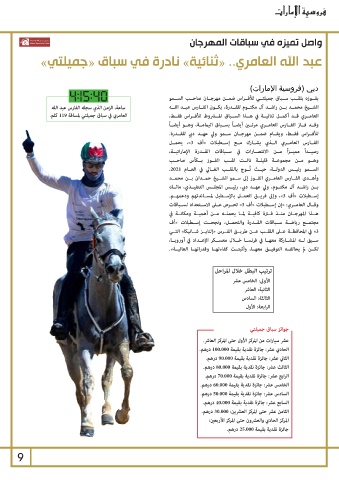 العامري في سباق جميلتي لمسافة 119كلم. الشــيخ محمــد بــن راشــد آل مكتــوم للقــدرة ،يكــون الفــارس عبــد اللــه