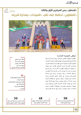 الوصيفة :ماسة عدنان. حافظـت إسـطبلات المغاويـر على لقب سـباق السـيدات لمسـافة