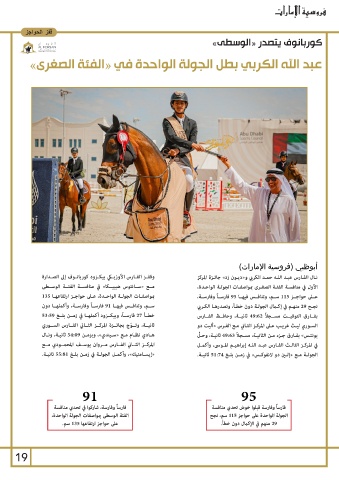 ســم ،وتنافــس فيهــا 91فارســاً وفارســة ،وأكملهــا دون الأول في منافسـة الفئـة الصغـرى بمواصفـات الجولـة الواحـدة،