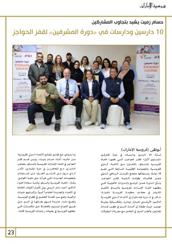 طريـق النجـاح المرسـوم ،وللحفـاظ عـى المكتسـبات التـي حــاضر في الــدورة المحــاضران في الاتحــاد الــدولي للفروســية