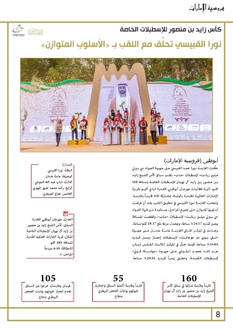 الحدث :مهرجان أبوظبي للقدرة. ونجحـت الفارسـة نـورا القبيـي في تحقيـق اللقـب بعـد أن فرضـت