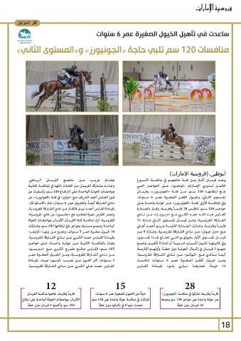 للفروسـية ،أول منافسـة لفئة الفرسـان الأشـبال ،بمواصفـات الجولة حواجــز 120ســم ،تنافــس 28فارســاً وفارســة ،وفــاز بالصــدارة