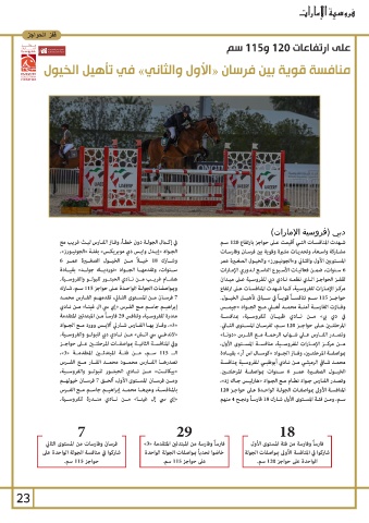 وشــارك 18خيــاً مــن الخيــول الصغــرة عمــر 6 شـهدت المنافسـات التـي أقيمت عـى حواجز بارتفاع 120سـم