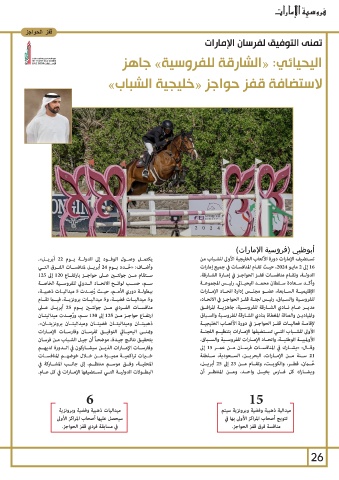 ارتفـاع حواجـز مـن 125إلى 130سـم ،و ُر ِصـدت ميداليتـان للفروسـية والسـباق ،رئيـس لجنـة قفـز الحواجـز في الاتحـاد،
