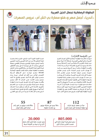 805.000درهــم ،توزعــت عــى أشــواطها الســبعة وأقيمــت البطولــة برعايــة ســمو الشــيخ منصــور بــن زايــد