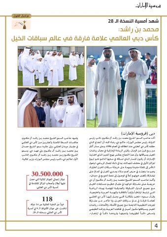 كأس دبي العالمي بنسخته الـ .28 الخيــل وســباقاتها مكــون أصيــل في ثقافتنــا العربيــة وتراثنــا الخليجــي