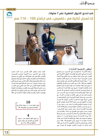 13 واحــدة ،تنافســت 9خيــول عــى الارتفــاع 90ـ 100ســم،