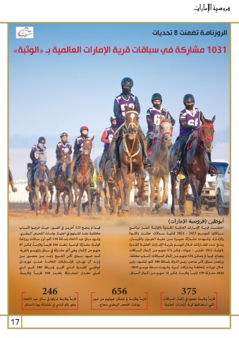 الوثبـة ،مشـاركة قياسـية بلغـت 246فارسـاً وفارسـاً ،تمكـن 87 ســباقاتها للموســم 2024 - 2023ثمانيــة ســباقات حفلــت بالقــوة