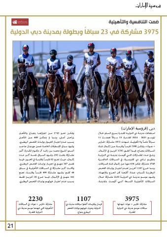 3975مشاركة في 23سباقًا وبطولة بمدينة دبي الدولية
