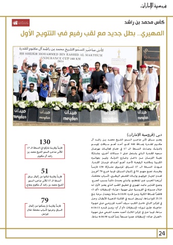 لكأس صاحب السمو الشيخ محمد بن مكتــوم للقــدرة لمســافة 160كلــم ،أحــد أهــم ســباقات الموســم