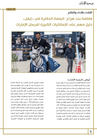 للفرسـان ،ودعـم مشـاركتهم في البطـولات القاريـة والدوليـة. أعربـت الشـيخة فاطمـة بنـت هـزاع بن زايـد آل نهيان ،رئيسـة
