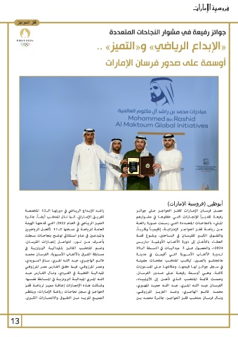 التميـز الريـاضي في العـام ،2022التـي قدمتهـا الهيئـة حصــل فرســان الإمــارات لقفــز الحواجــز عــى جوائــز