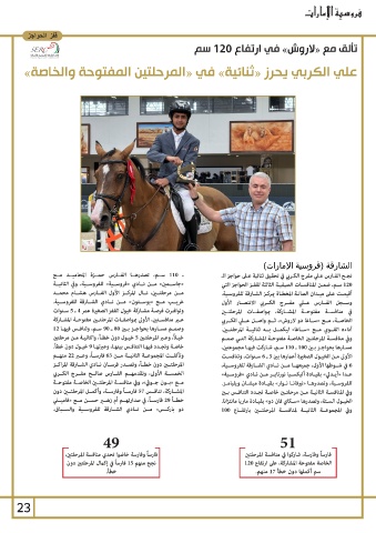 ـ 110ســم ،تصدرهــا الفــارس حمــزة المحاميــد مــع الشارقة (فروسية الإمارات)