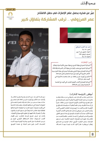 وأشــار إلى حــرص جميــع فرســان المنتخــب عــى إظهــار ويأمـل الفـارس عمـر المرزوقـي أن تمثـل المشـاركة في الألعـاب الأولمبيـة