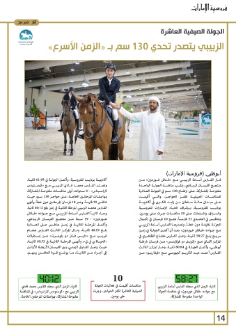 الزبيبي مع «كوستودس لاراسيناس» في المنافسة الصيفية العاشرة لقفز الحواجز ،وجرت مع جواده «فلاش غوردون» في منافسة الجولة
