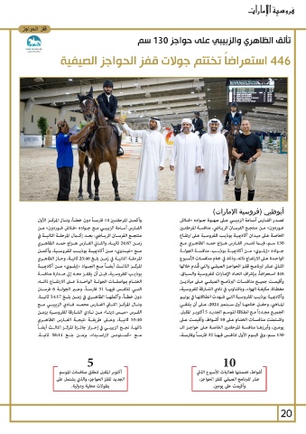 وأكمــل المرحلتــن 14فارســاً دون خطــأ ،ونــال المركــز الأول أبوظبي (فروسية الإمارات)