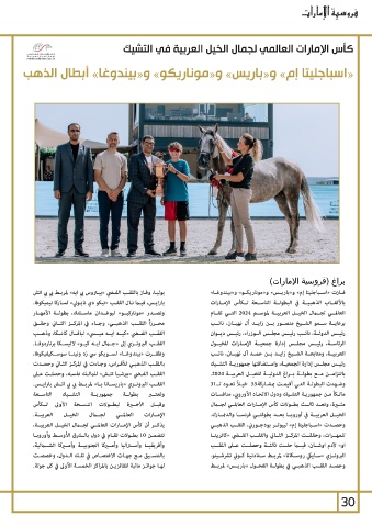 الإمــارات العالمــي لجــال الخيــل العربيــة. مالـكاً مـن جمهوريـة التشـيك ودول الاتحـاد الأوروبي ،منافسـات
