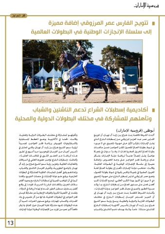 وتأهيلهــم للمشــاركة في مختلــف البطــولات الدوليــة والمحليــة. أبوظبي (فروسية الإمارات)