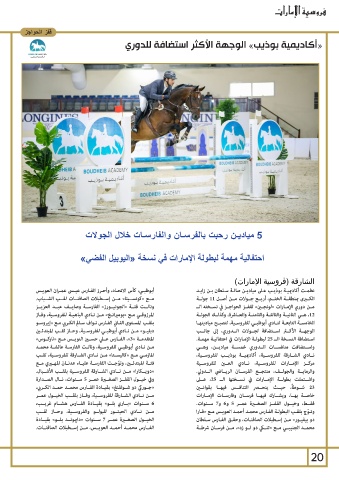 مـن نـادي أبوظبـي للفروسـية ،ونالـت الفارسـة عائشـة محمـد الوجهــة الأكــر اســتضافة لجــولات الــدوري ،إلى جانــب